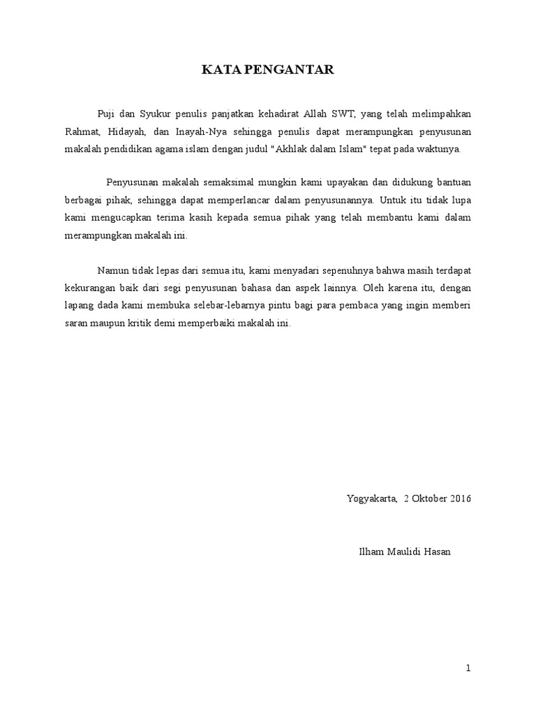 Kata Pengantar Dan Daftar Isi Makalah Agama Akhlak