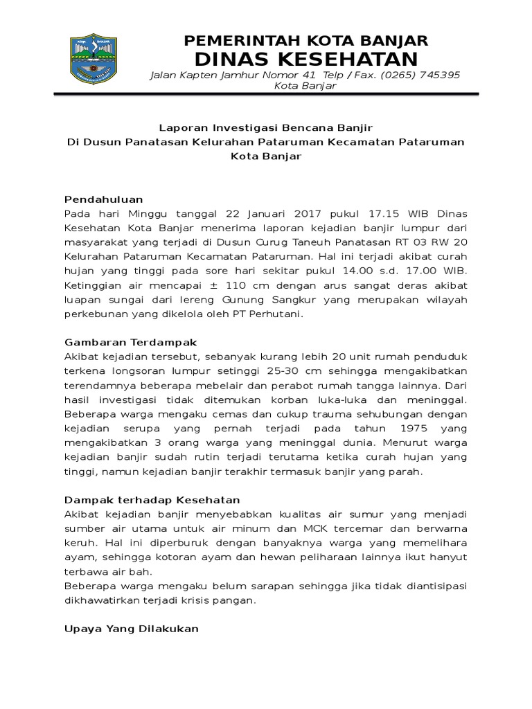 Berikut adalah sedikit infografik berkenaan laporan terkini kejadian bencana banjir di seluruh negara pada 20 Disember 2020. Gempa bumi Gempa bumi dasar laut maupun letusan pulau gunung berapi yang membentuk kawah seperti Thera atau Krakatau dapat memicu terjadinya gelombang besar yang disebut tsunami yang menyebabkan banjir pada daerah pesisir pantai C. This contoh teks laporan hasil observasi banjir as one of the most working sellers here will no question be in the midst of the best options to review.