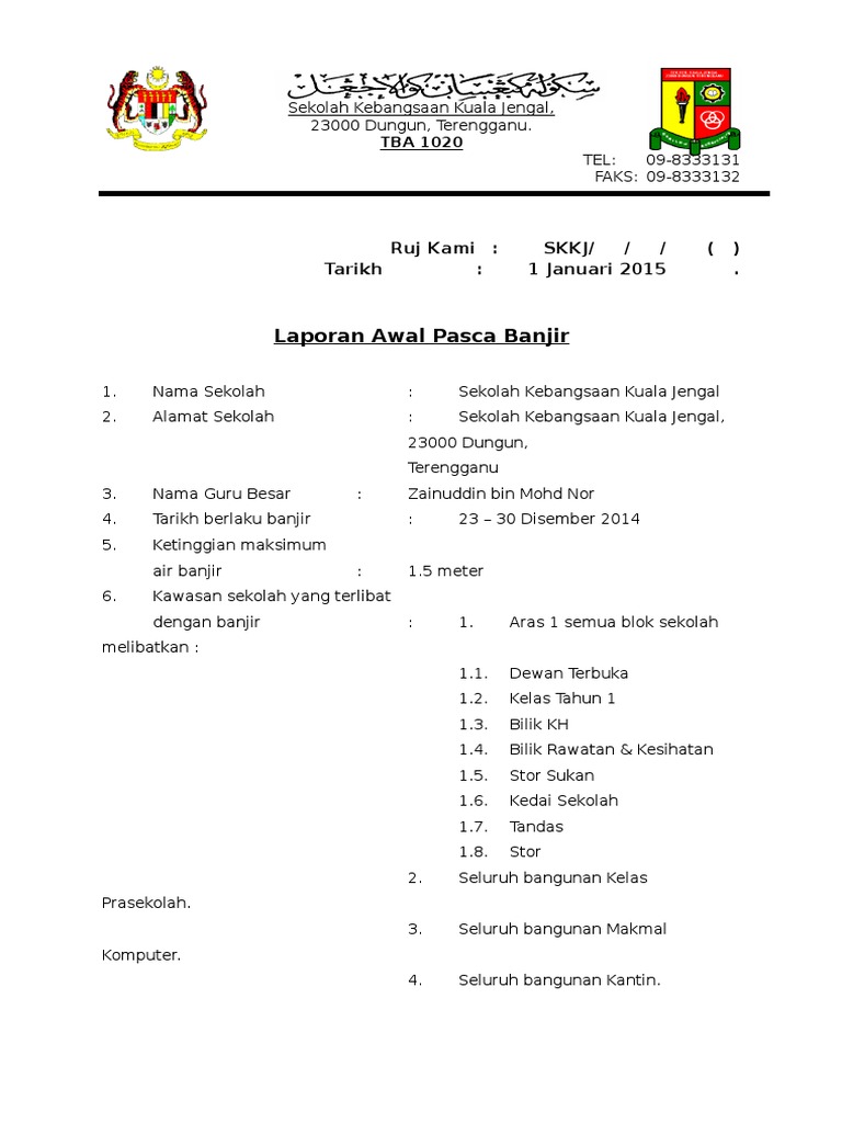 Kumpulan contoh makalah contoh kata pengantar contoh laporan contoh skripsi judul skripsi contoh karya tulis ilmiah contoh surat dan lain-lain. 1000 pagi RINGKASAN LAPORAN BANJIR Kejadian banjir yang melanda beberapa Jajahan di Negeri Kelantan adalah disebabkan oleh hujan lebat. Saat ini Jakarta telah menderita kerugian akibat banjir yang berulang terutama yang terjadi pada bulan Januari 1996 Februari 2001 dan Februari 2007.
