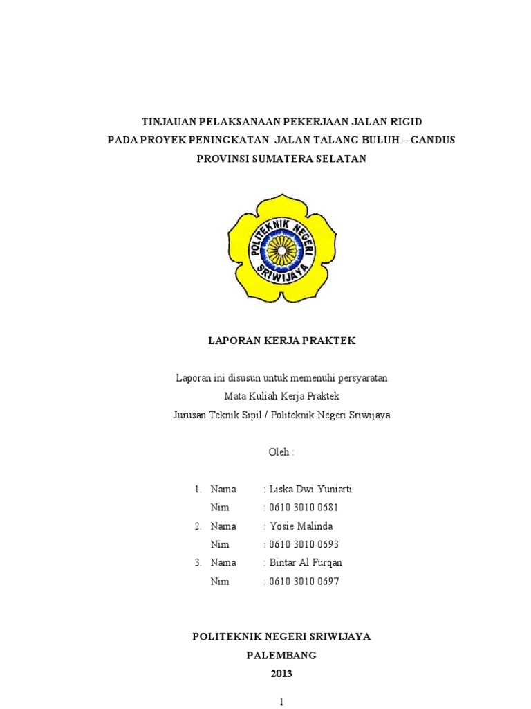 Dalam bangku perkuliahan mahasiswa hanya dibekali teori-teori ilmu teknik sipil dan melihat gambaran umum saja tanpa melihat aplikasinya di lapangan. Cantohlaporanmu penjelasan pelaksanaan praktik kerja lapangan pkl jurusan teknik. Penjelasan pelaksanaan praktik kerja lapangan pkl jurusan teknik.