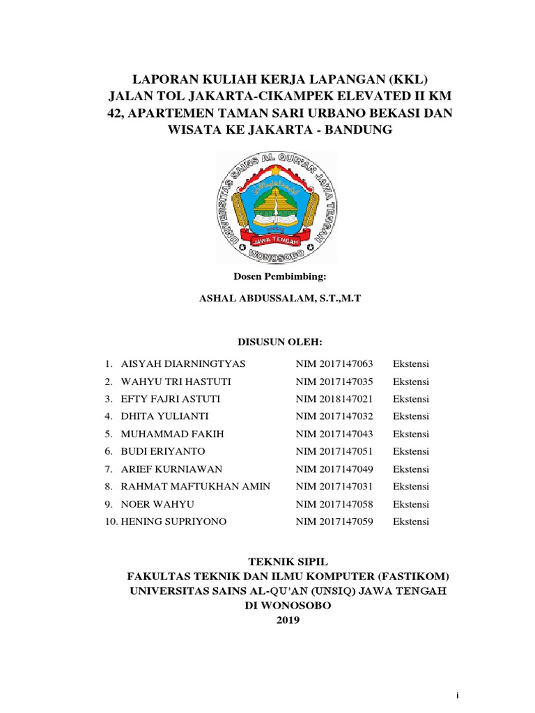 Contoh laporan kuliah lapangan teknik sipil. BAB I PENDAHULUAN Tanah merupakan bahan yang banyak dipakai pada berbagai pekerjaan teknik sipilSecara umum bahan. Membuat Laporan Praktik Kerja Lapangan yang ditulis sesuai dengan pedoman penulisan. Tujuan khususPraktek Kerja Lapangan PKL bagi mahasiswa Teknik Sipil DIII Politeknik Negeri Pontianak secara khusus bertujuan untuk.