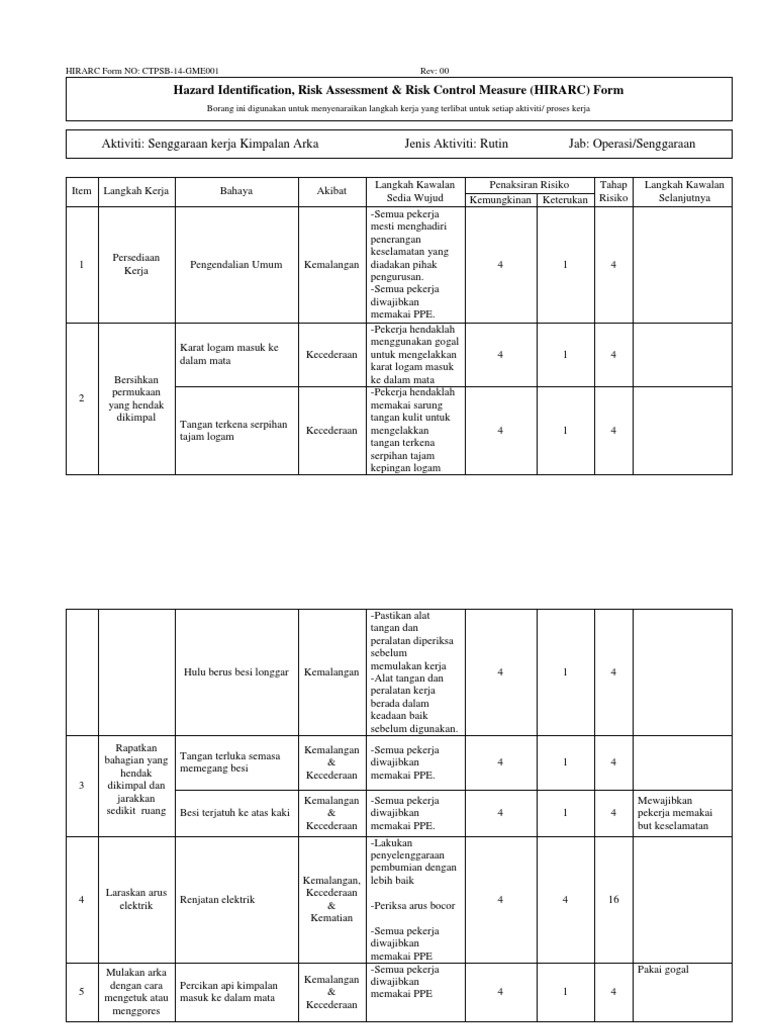 Hazard identification and risk assessment in boiler division using hazard identification risk assessment and risk control hirarc April 2017 DOI. Manajemen Alat Pelindung Diri 16. Sebagai sebuah kilang yang komited terhadap OSHA 1994 kilang ini telah menubuhkan.