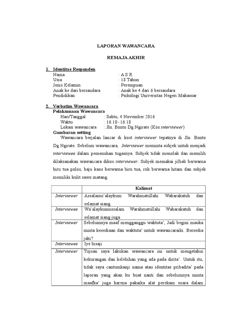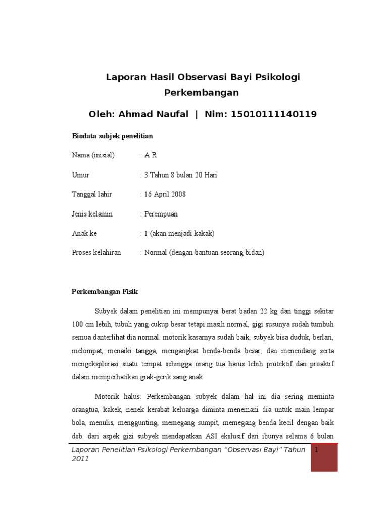 Contoh laporan observasi psikologi perkembangan remaja. Download Full PDF Package. Di negara barat istilah remaja dikenal dengan edolescence yang berasal dari bahasa latin edolescere yang berarti tumbuh menjadi dewasa atau dalam perkembangan menjadi dewasa. Observasi tidak mampu menjelaskan dinamika tingkah laku.