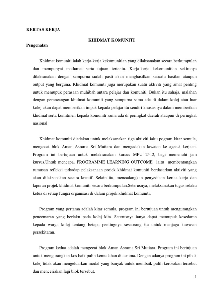 Modul teras khidmat komuniti xi kata alu aluan pengarah bahagian hal ehwal dan pembangunan pelajar bhepp jabatan pengajian tinggi assalamualaikum w b t. KERTAS KERJA CADANGAN BAGI PROGRAM KHIDMAT MASYARAKAT DI RUMAH ANAK-ANAK YATIM NURUL IHSAN SG SIPUT 10 TUJUAN Kertas kerja ini bertujuan untuk mendapatkan kelulusan Seminar dan Projek Pelajar untuk menganjurkan Program Loving is Caring bagi memenuhi syarat kerja kursus mata pelajaran Khidmat Masyarakat MPU 3412. View flipping ebook version of Laporan Tahunan Kolej Komuniti Hulu Langat 2018 published by kkhlmedia on 2019-04-02.