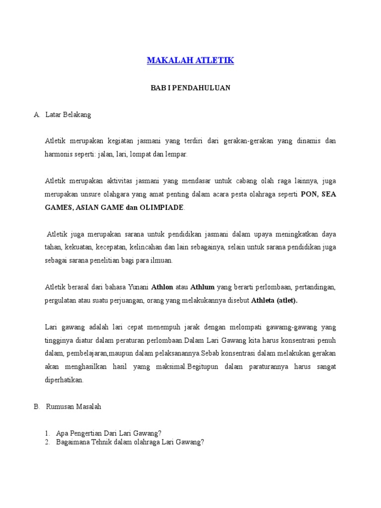 Makalah Atletik Lari Gawang Contoh Makalah