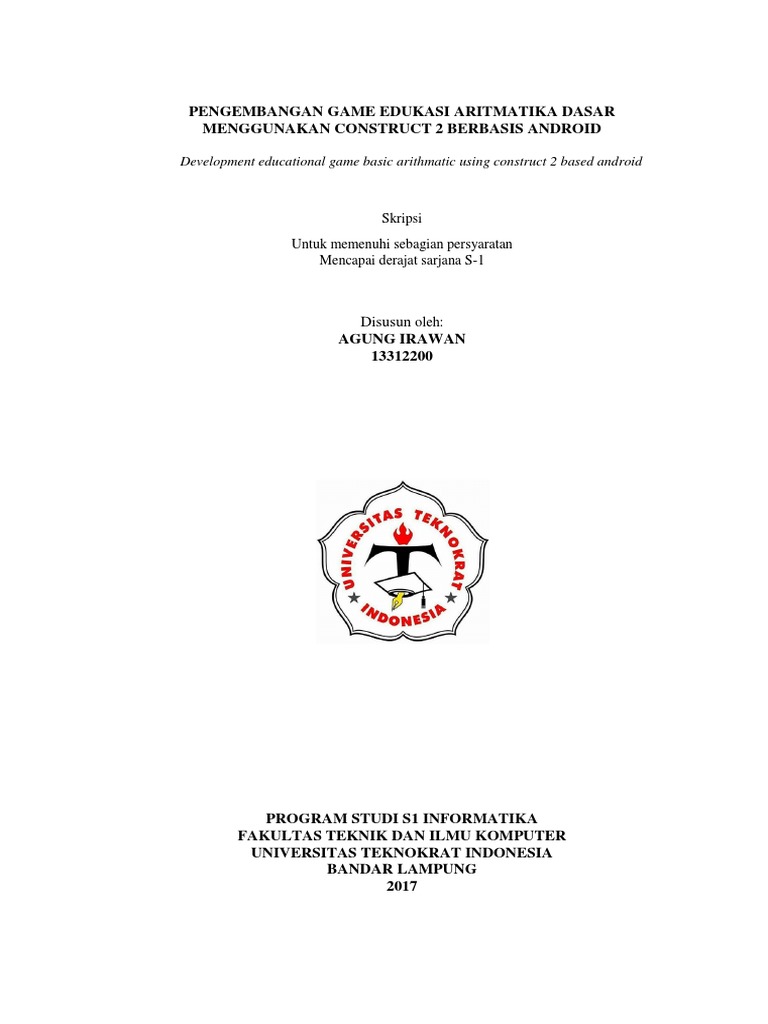 SkripsiS1 thesis Fakultas Teknik. Cara mudah membuat game edukasi dengan menggunakan software Contruct 2 Addeddate 2018-03-11 181841. Terima Jasa Skripsi Game Edukasi Game 2D Media Interaktif.